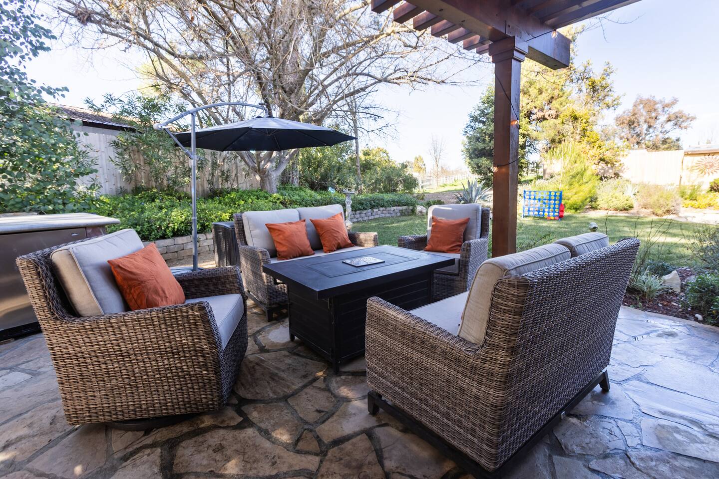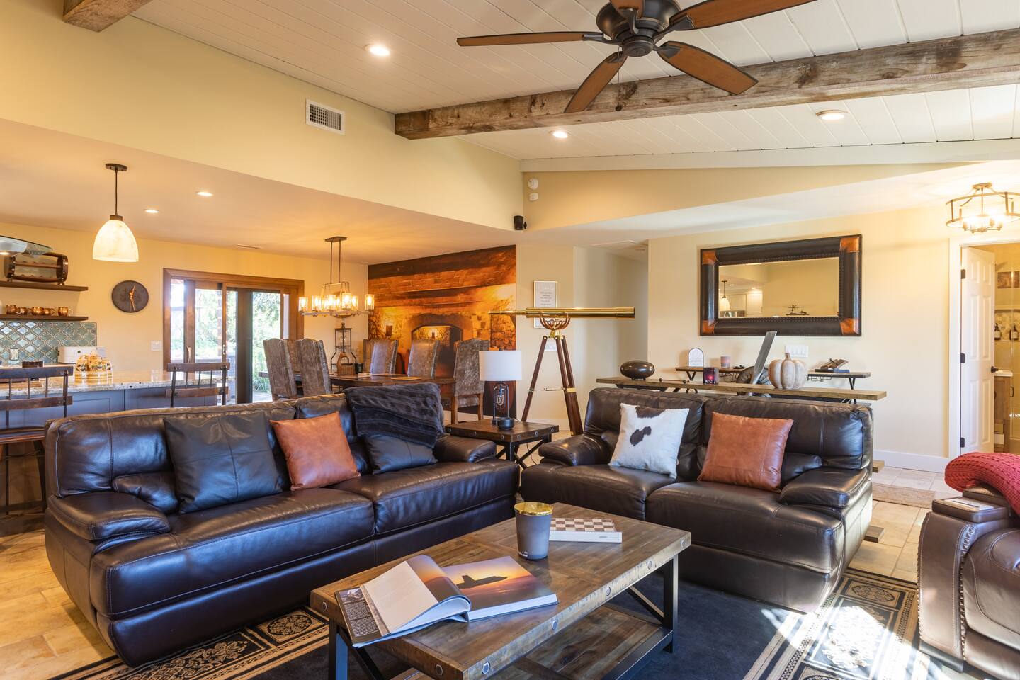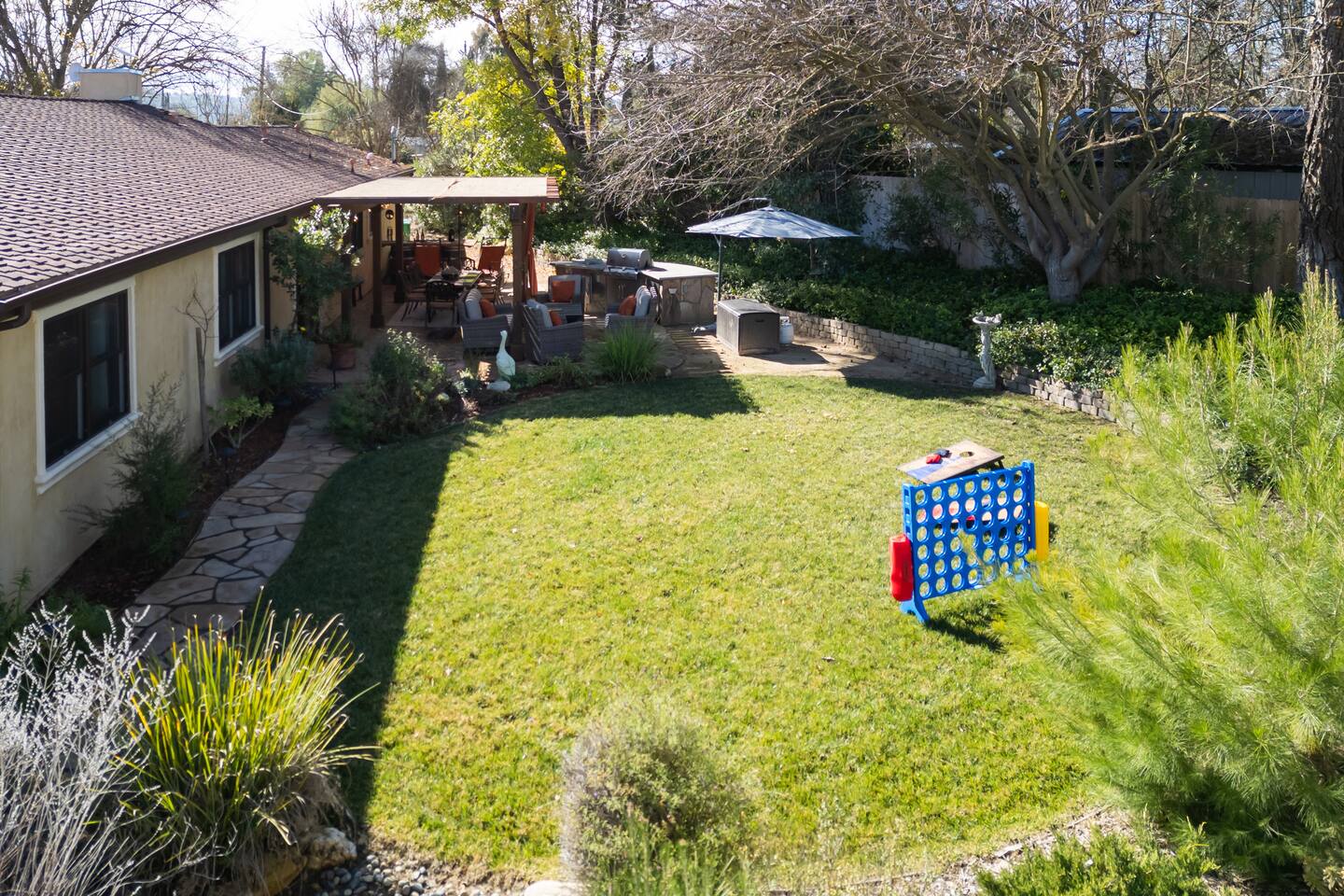Welcome to Diamond Sky Ranch, an exceptional countryside retreat designed for guests seeking tranquility, elegance, and unforgettable experiences. Set on two acres of pristine privacy, this stunning estate invites you to slow down and savor the beauty of California’s wine country. Thoughtfully curated with comfort and sophistication in mind, the home accommodates up to 9 guests, offering generous indoor and outdoor spaces ideal for relaxation, connection, and celebration. Located just a scenic drive — approximately 12 miles from downtown Paso Robles— guests enjoy effortless access to world-class wineries, acclaimed dining, and the region’s most sought-after attractions. Diamond Sky Ranch features four beautifully appointed bedrooms and three bathrooms. Sleeping Arrangements: Primary Suite – King bed with a luxurious private bathroom Guest Bedroom 2 – King bed with shared bathroom Guest Bedroom 3 – King bed with shared bathroom Guest Bedroom 4 – Full bed, Twin bed, and Twin trundle with shared bathroom Each room has been designed to provide a serene and restorative atmosphere. Indulge in a collection of resort-style amenities designed to enhance your stay: - Hot Tub - Pickleball court - Horseshoe pit - Corn hole - Ping pong table - Giant Connect 4 - Foosball table Perfect for friendly competition, family gatherings, or leisurely afternoons under the open sky. Step into your own outdoor haven. The patio provides an elegant setting for morning coffee, sunset cocktails, and starlit evenings. Enjoy: • Outdoor dining & BBQ • Relaxation lounge areas • Private hot tub Whether soaking under the stars or enjoying local vintages, every moment feels indulgent. Diamond Sky Ranch offers convenient access to the area’s premier experiences: • Live performances at Vina Robles Amphitheatre • Mesmerizing light installations at Sensorio • Renowned wineries & tasting rooms • Seasonal wine festivals & events Diamond Sky Ranch is more than a stay — it’s an experience of luxury, serenity, and wine country charm.
