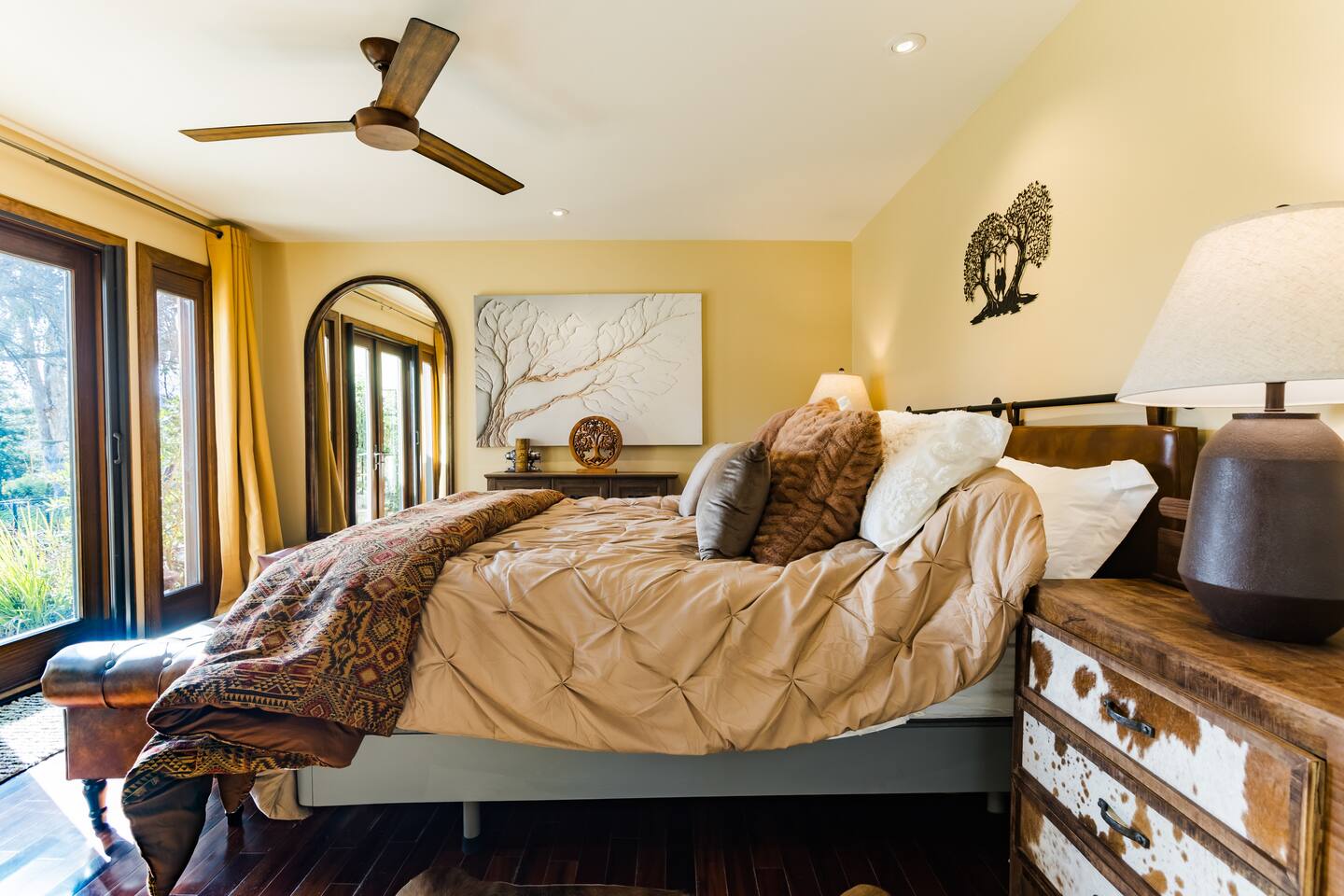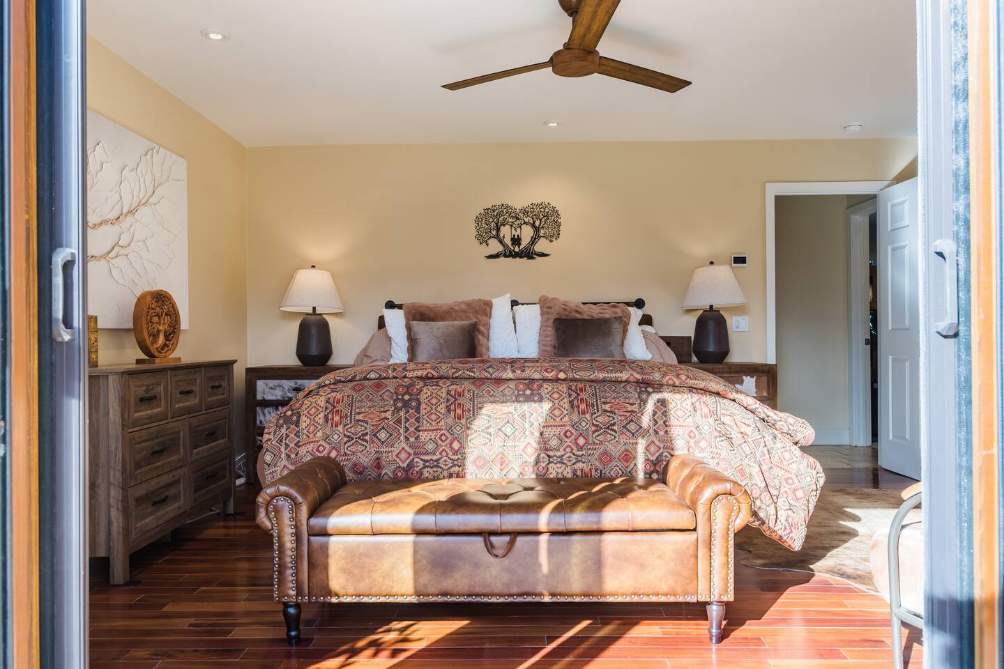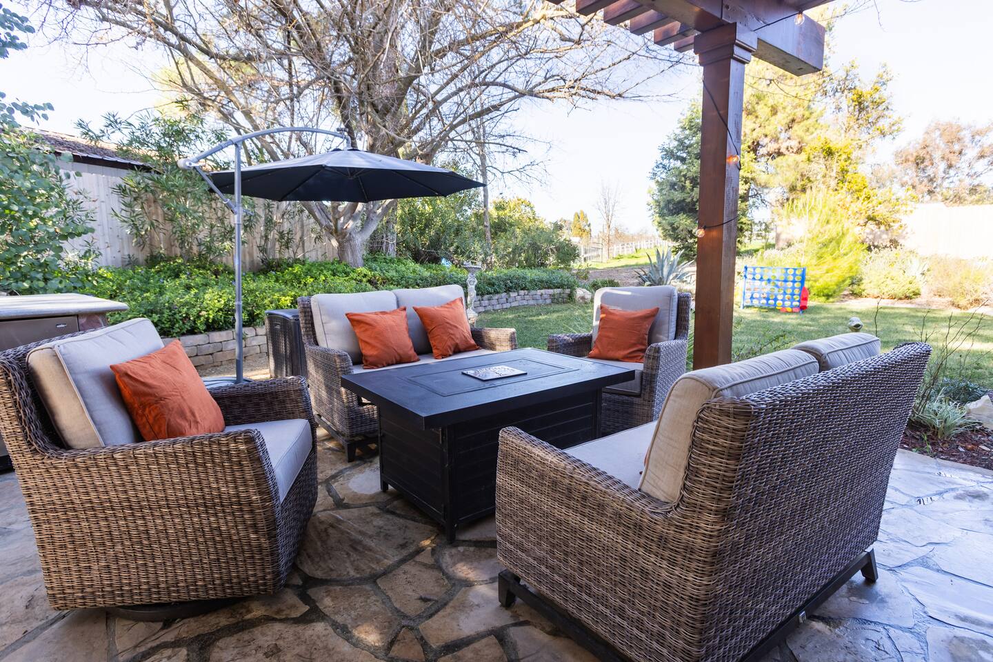 Welcome to Diamond Sky Ranch, an exceptional countryside retreat designed for guests seeking tranquility, elegance, and unforgettable experiences. Set on two acres of pristine privacy, this stunning estate invites you to slow down and savor the beauty of California’s wine country. Thoughtfully curated with comfort and sophistication in mind, the home accommodates up to 9 guests, offering generous indoor and outdoor spaces ideal for relaxation, connection, and celebration. Located just a scenic drive — approximately 12 miles from downtown Paso Robles— guests enjoy effortless access to world-class wineries, acclaimed dining, and the region’s most sought-after attractions. Diamond Sky Ranch features four beautifully appointed bedrooms and three bathrooms. Sleeping Arrangements: Primary Suite – King bed with a luxurious private bathroom Guest Bedroom 2 – King bed with shared bathroom Guest Bedroom 3 – King bed with shared bathroom Guest Bedroom 4 – Full bed, Twin bed, and Twin trundle with shared bathroom Each room has been designed to provide a serene and restorative atmosphere. Indulge in a collection of resort-style amenities designed to enhance your stay: - Hot Tub - Pickleball court - Horseshoe pit - Corn hole - Ping pong table - Giant Connect 4 - Foosball table Perfect for friendly competition, family gatherings, or leisurely afternoons under the open sky. Step into your own outdoor haven. The patio provides an elegant setting for morning coffee, sunset cocktails, and starlit evenings. Enjoy: • Outdoor dining & BBQ • Relaxation lounge areas • Private hot tub Whether soaking under the stars or enjoying local vintages, every moment feels indulgent. Diamond Sky Ranch offers convenient access to the area’s premier experiences: • Live performances at Vina Robles Amphitheatre • Mesmerizing light installations at Sensorio • Renowned wineries & tasting rooms • Seasonal wine festivals & events Diamond Sky Ranch is more than a stay — it’s an experience of luxury, serenity, and wine country charm.