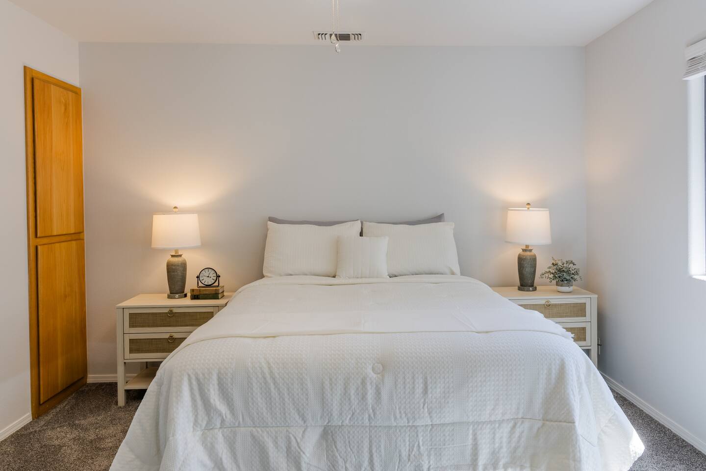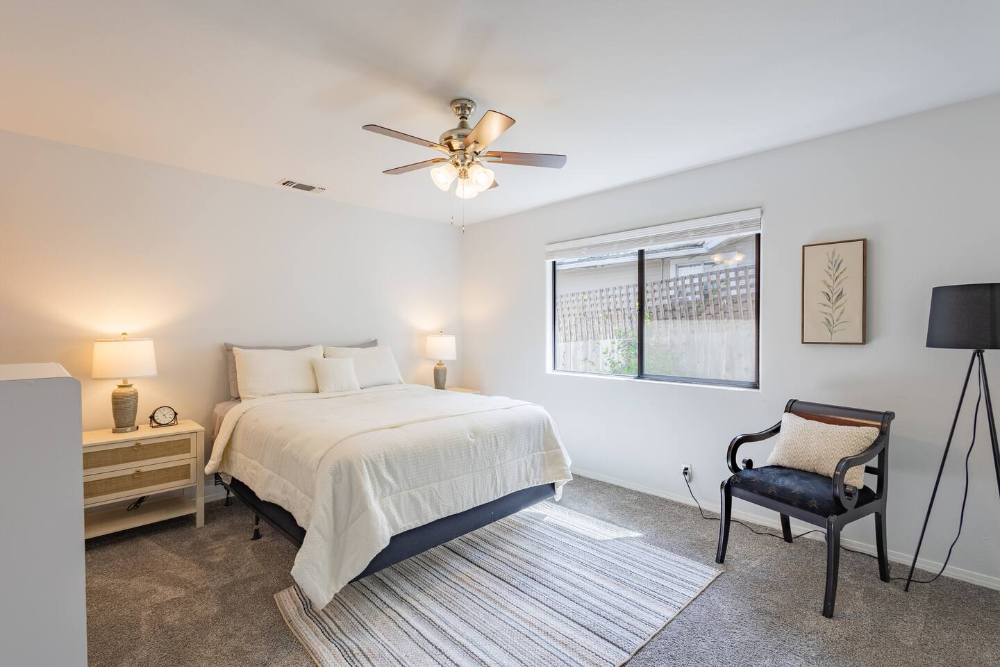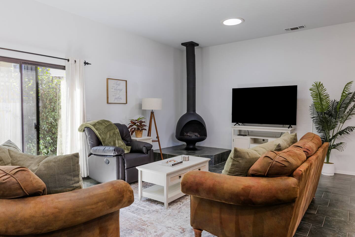 Welcome to 9th and Olive – Your Paso Robles Wine Retreat Nestled just a few blocks from the vibrant Downtown Square, 9th and Olive is a charming and inviting home that offers the perfect blend of comfort and convenience. Whether you're planning a romantic wine-tasting escape or a relaxing weekend getaway, this thoughtfully designed home is ideal for both unwinding and entertaining. The Space Bedrooms: Three beautifully appointed rooms, each with a cozy queen-sized bed and plenty of storage. Bathrooms: Two full bathrooms with fresh linens and essentials provided. The second bathroom is combined with the laundry room. Living Area: A warm, inviting living room with a plush sofa —perfect for lounging after a day of exploring wine country. *The indoor fireplace is not available to use. Kitchen: Fully equipped with all major appliances, cookware, and utensils for home-cooked meals. Outdoor Space: Sip local wine in the private back yard or host a sunset BBQ under the stars in front of the fire table. *Wood burning BBQ outside isn't available for guests use. We provide a propane BBQ Grill. Location & Views Located in a peaceful, desirable neighborhood just steps from downtown Paso Robles. Walk to award-winning restaurants, tasting rooms, and boutique shops, or take a short drive to explore the surrounding vineyards and coastal hills. Why You’ll Love It Here: -Walkable to Downtown Paso Robles -Quiet, safe neighborhood -Private backyard with BBQ grill and fire table -Ideal for couples, friends, or family getaways 9th and Olive isn’t just a place to stay—it’s your home base for relaxing, reconnecting, and experiencing the best of Paso Robles wine country.